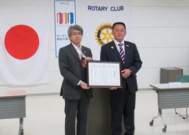 皆様、本日は、桜区区役所会議室をお借りして 742 例会をさせて頂く事になりました。 桜区区長・池田智二様、副区長・関口清規様、総務課課長 三好明美様、プラザウエスト館長 相 原直美様、サイデン化学アリーナ館長・榎本道子様、お忙しい中、時間を作って頂き、有難う御座います。当クラブの過去の活動に、中央区区役所にバラ花壇・ベンチ寄贈・区民祭りに参加、当クラブと福島県人会とコラボし、東北復興支援を行いました。コロナで桜区区民祭りが中止になり、 桜区で実行したかったです。当クラブは、桜区住人が、十数人居ります。本日お陰様で開催出来る ことになりました。参加皆様のお蔭です。